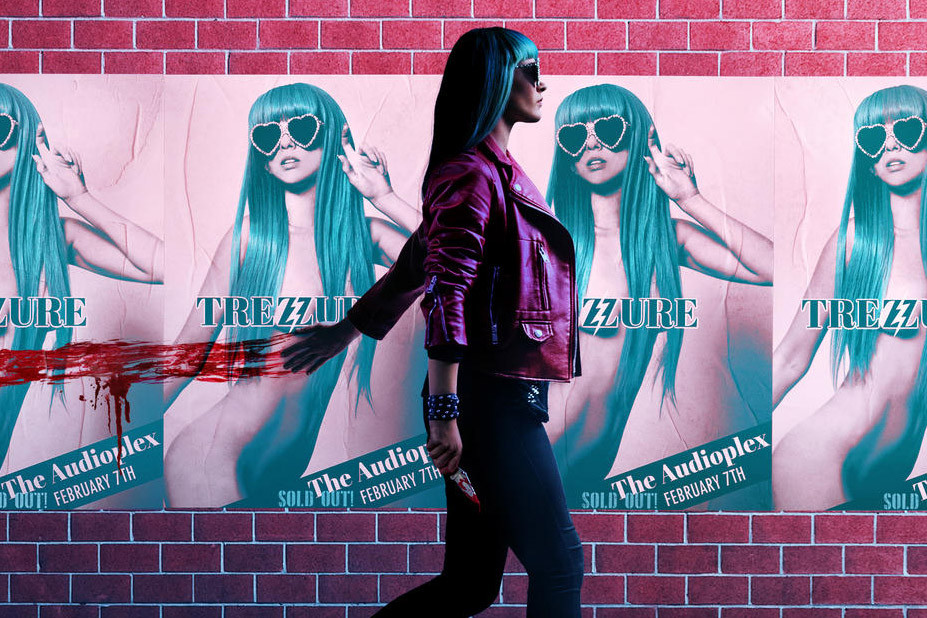 Valentine (Britt Baron) is an up-and-coming pop singer alongside her bandmate and best friend. She’s heckled by a group of super fans for the popstar Trezzure (Anna Lore), who has an identical look and sound to hers – leading Val to be labeled a copycat. She ignores their jabs and performs a killer set. As the evening comes to a close and the concertgoers begin to thin out, Valentine is ambushed by her ex-boyfriend Royal (Benedict Samuel).