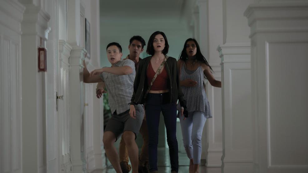 Blumhouse’s Truth or Dare follows a group of college students on their spring break adventure down to Mexico. Olivia (Lucy Hale) is guilted into going by her best friend Markie (Violett Beane), as it is their senior year. Rounding out the group is Markie’s boyfriend Lucas (Tyler Posey), as well as a few more buddies.