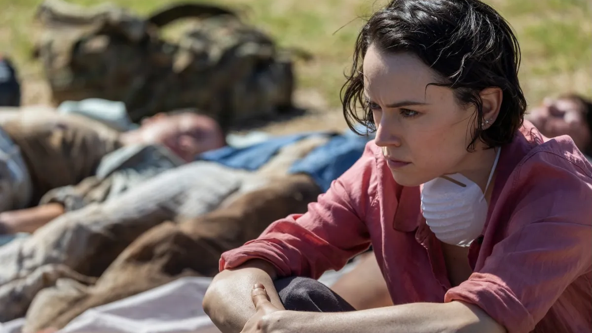 The world is shaken by the aftermath of a governmental disaster that caused a deadly cloud to cover Tasmania, wiping out every living being. Ava (Daisy Ridley) journeys to the quarantine zone to volunteer as part of the body retrieval unit, with a mission to find her husband, who was attending a conference.